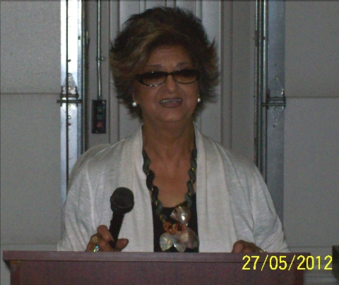 Sarah was talking with Pam before the banquet started! "Smile, Sarah!"